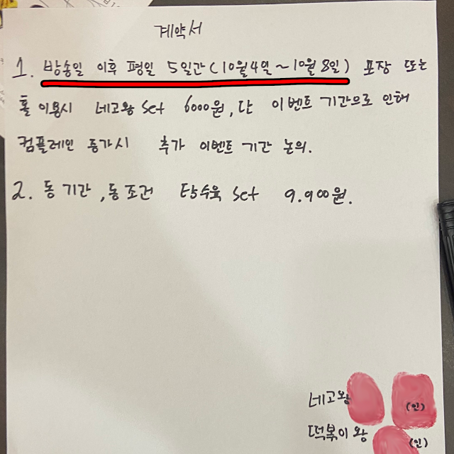 1. 방송일 이후 평일 5일간 (10월 4일~ 10월 8일) 포장 또는 홀 이용시 네고왕 세트 6,000원. 단, 이벤트 기간으로 인한 컴플레인 증가시